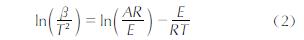 由ln((β)/(T2))对-(1000)/(RT)作图可得到一条直线,从直线斜率可求得E,从截距可求得A。