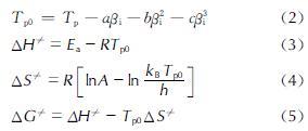 ln[β/(T2p)]=ln[(AR)/(Ea)]-(Ea)/(RTp)(1)