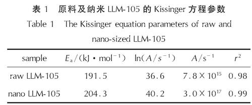 表1 原料及纳米LLM-105的Kissinger方程参数