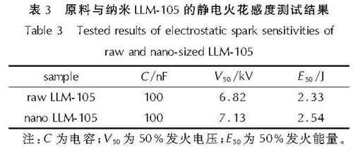 原料和纳米LLM-105的静电火花感度测试结果如表3所示。
