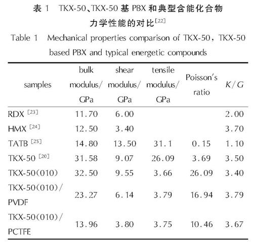 表1 TKX-50、TKX-50基PBX和典型含能化合物力学性能的对比[22]