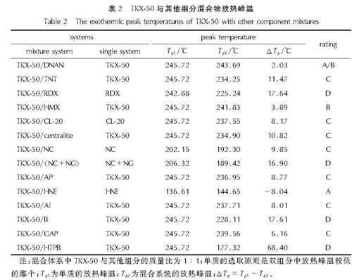 Table 2 The exothermic peak temperatures of TKX-50 with other component mixtures system