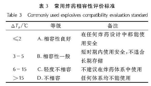 表3 常用炸药相容性评价标准