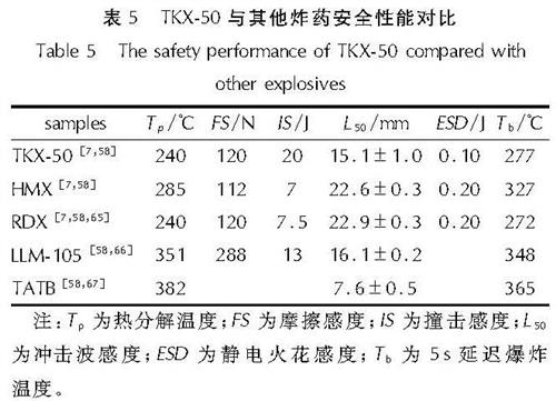 Table 5 The safety performance of TKX-50 compared with other explosives
