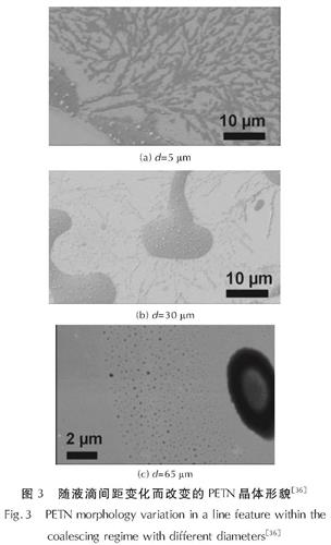 图3 随液滴间距变化而改变的PETN晶体形貌[36]