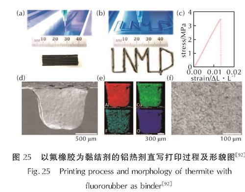 图25 以氟橡胶为黏结剂的铝热剂直写打印过程及形貌图[92]