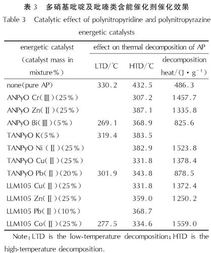 Table 3 Catalytic effect of polynitropyridine and polynitropyrazine