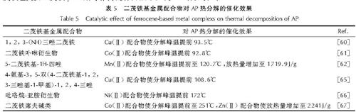 Table 5 Catalytic effect of ferrocene-based metal complexs on thermal decomposition of AP