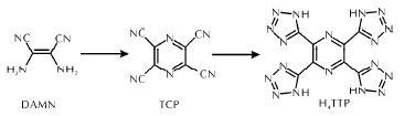 以DAMN为原料,通过氧化缩合和叠氮化两步反应合成H4TTP,反应方程式如下: