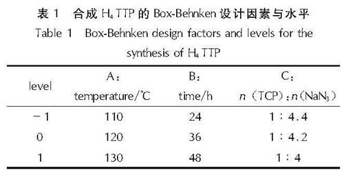Table 2 Design and results of Box-Behnken test for the synthesis of H4TTP