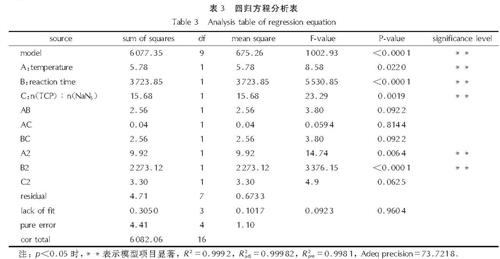 合成H4TTP的响应面试验结果见表2,方差分析结果见表3。