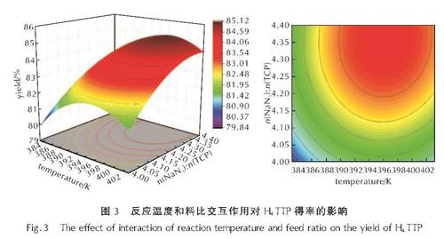 图3 反应温度和料比交互作用对H4TTP得率的影响