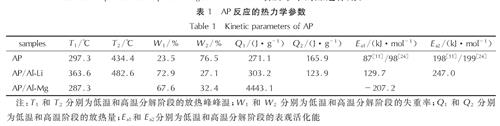 (3)使用Kinssinger法对加入铝锂合金后AP分解的表观活化能进行计算,得到AP低温分解阶段的表观活化能约为129.7kJ/mol,高温分解阶段表观活化能约为247.0kJ/mol。