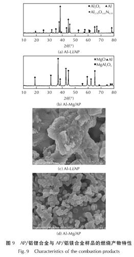图9 AP/铝锂合金与AP/铝镁合金样品的燃烧产物特性