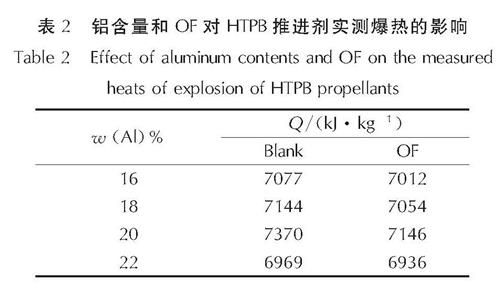 表2 铝含量和OF对HTPB推进剂实测爆热的影响