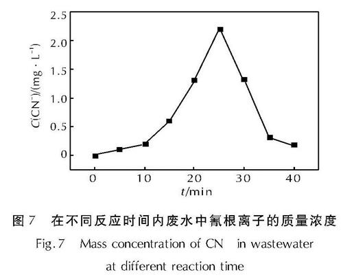 图7 在不同反应时间内废水中氰根离子的质量浓度