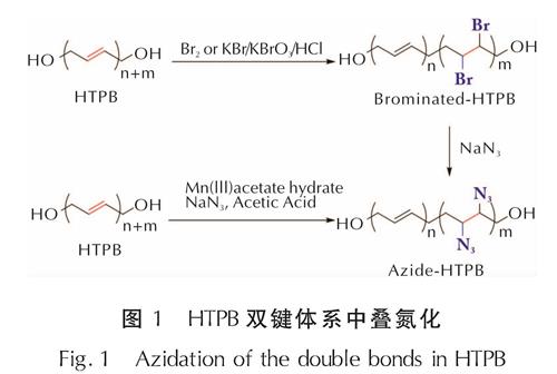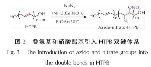 图3 叠氮基和硝酸酯基引入HTPB双键体系