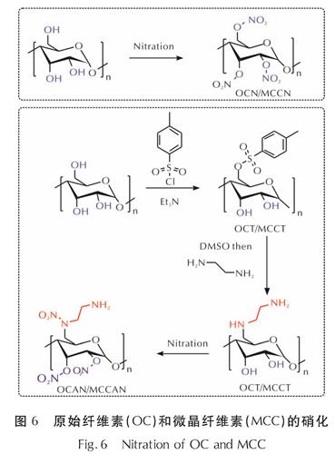 图7 原始纤维素(OC)和微晶纤维素(MCC)的多元含能衍生化