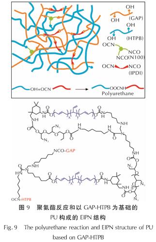 图9 聚氨酯反应和以GAP-HTPB为基础的PU构成的EIPN结构