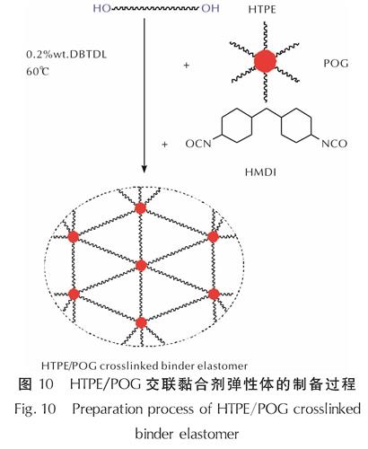 Fig.9 The polyurethane reaction and EIPN structure of PU based on GAP-HTPB图10 HTPE/POG交联黏合剂弹性体的制备过程