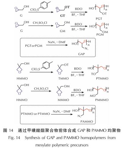 图14 通过甲磺酸酯聚合物前体合成GAP和PAMMO均聚物
