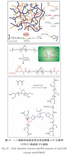 图20 1,3-偶极环加成反应以及由酰基-GAP三唑和HTPB-PU构成的IPN结构