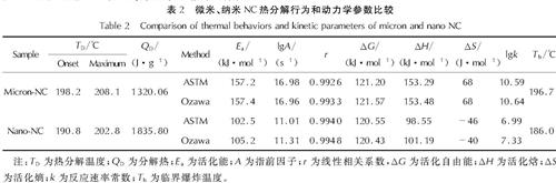 表2 微米、纳米NC热分解行为和动力学参数比较